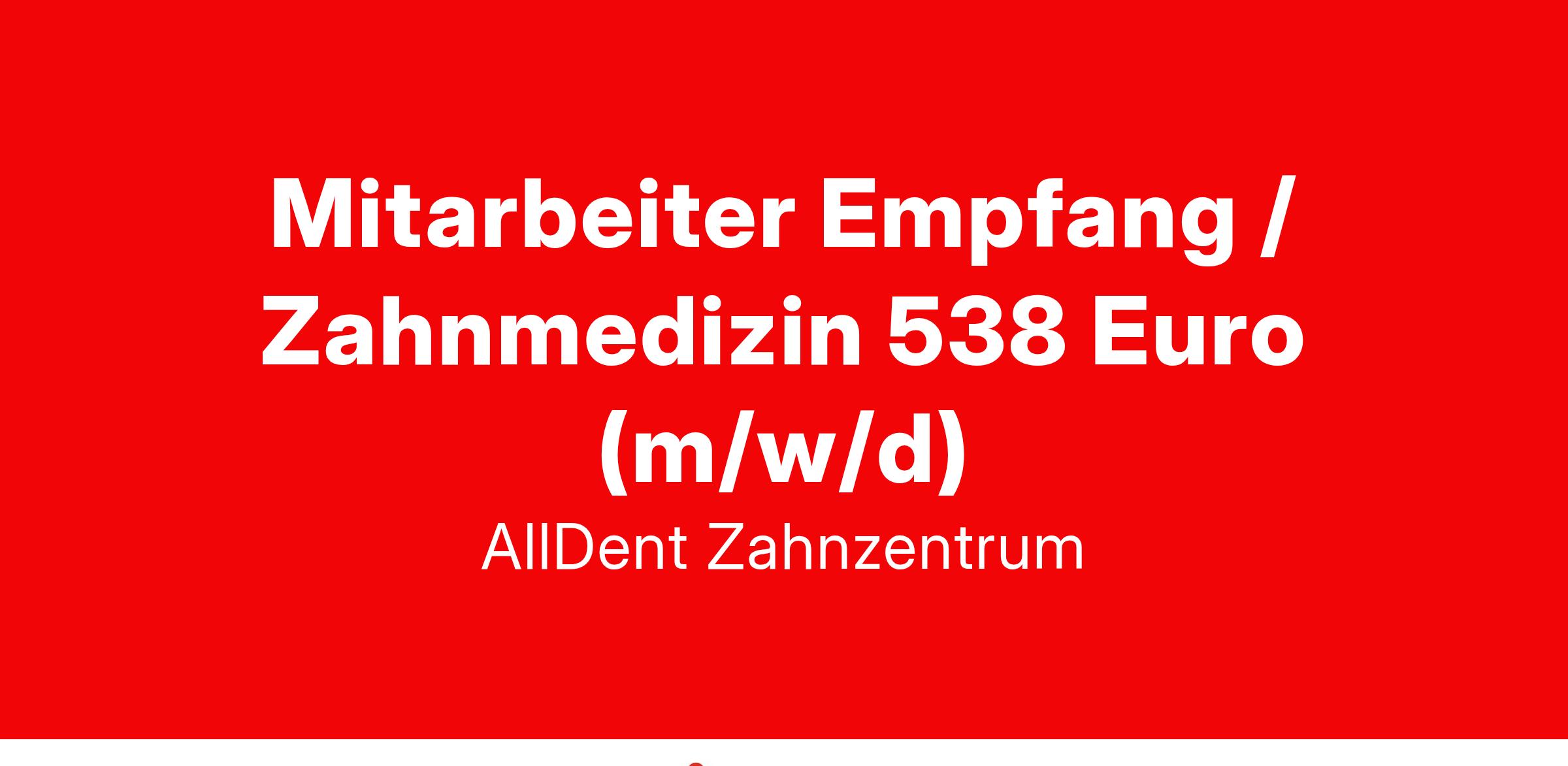 Mitarbeiter Empfang / Zahnmedizin 538 Euro (m/w/d)